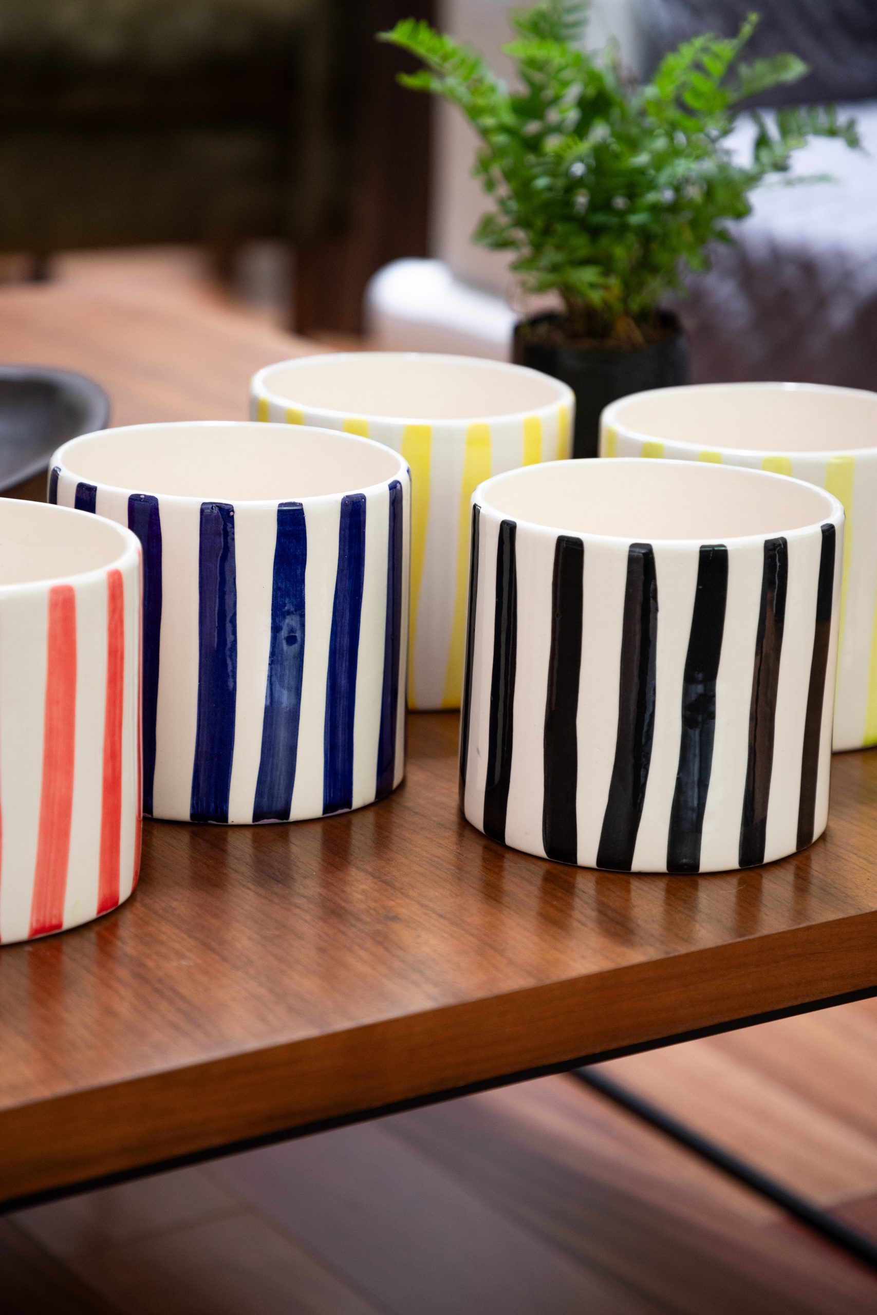 Maceta de Cerámica Cilindro Bicolor de 15cm x 15 cm Diseño de Lineas