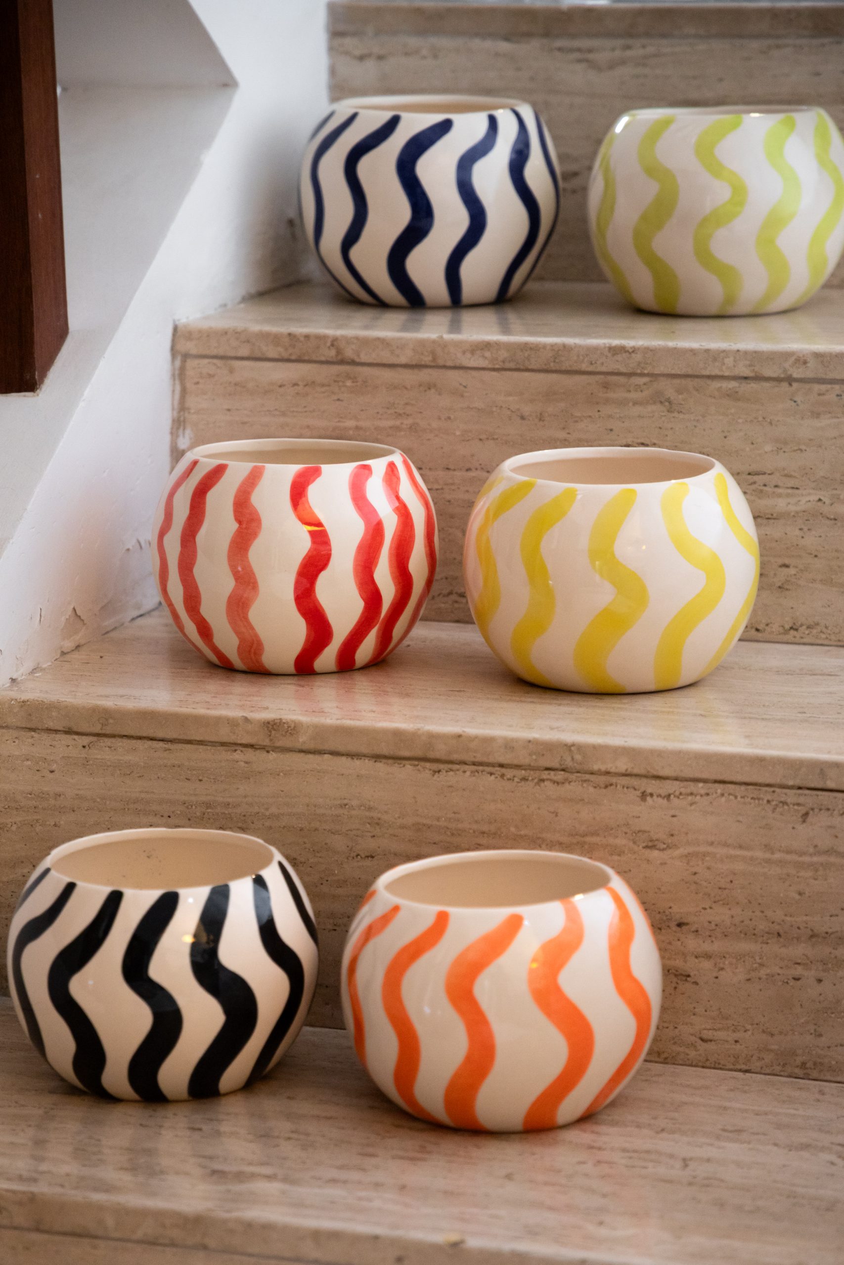 Maceta de Cerámica Esfera Bicolor de 15cm x 13 cm Diseño de Curvas