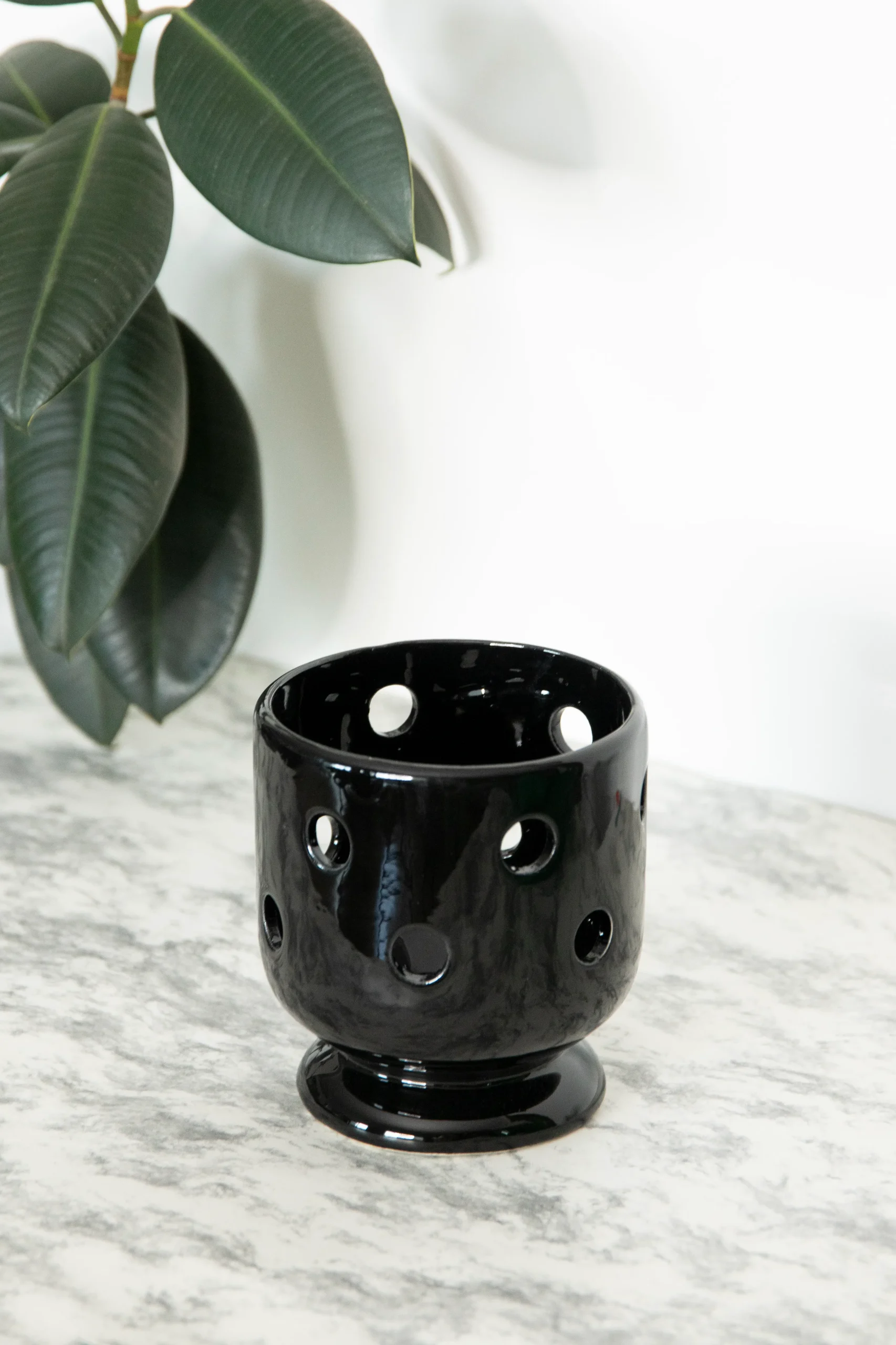 Maceta de cerámica con forma de copa estilo zigzag color negro