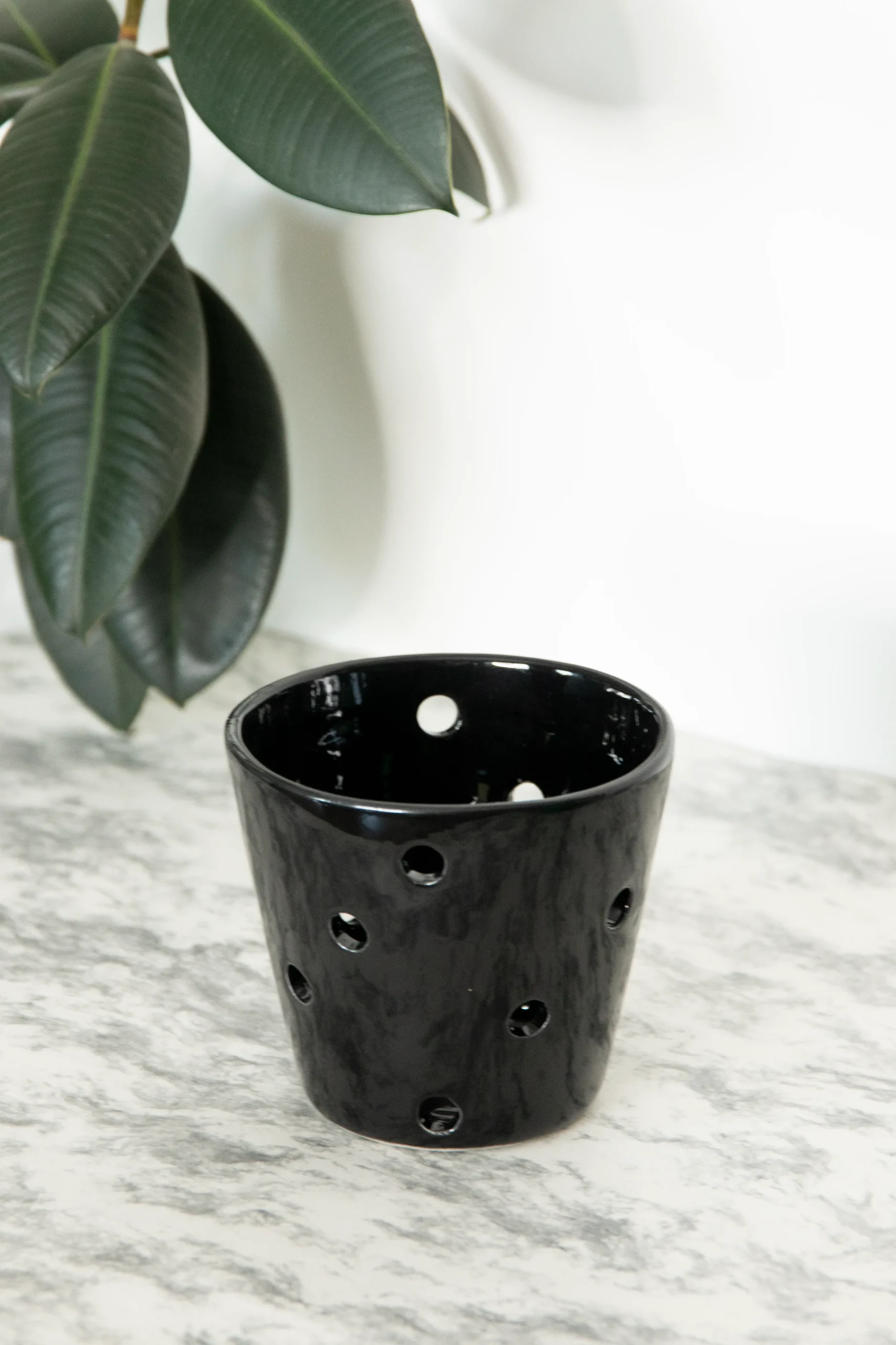 Maceta De Cerámica Esmaltada para Orquídea Chica Forma de Vaso Negro
