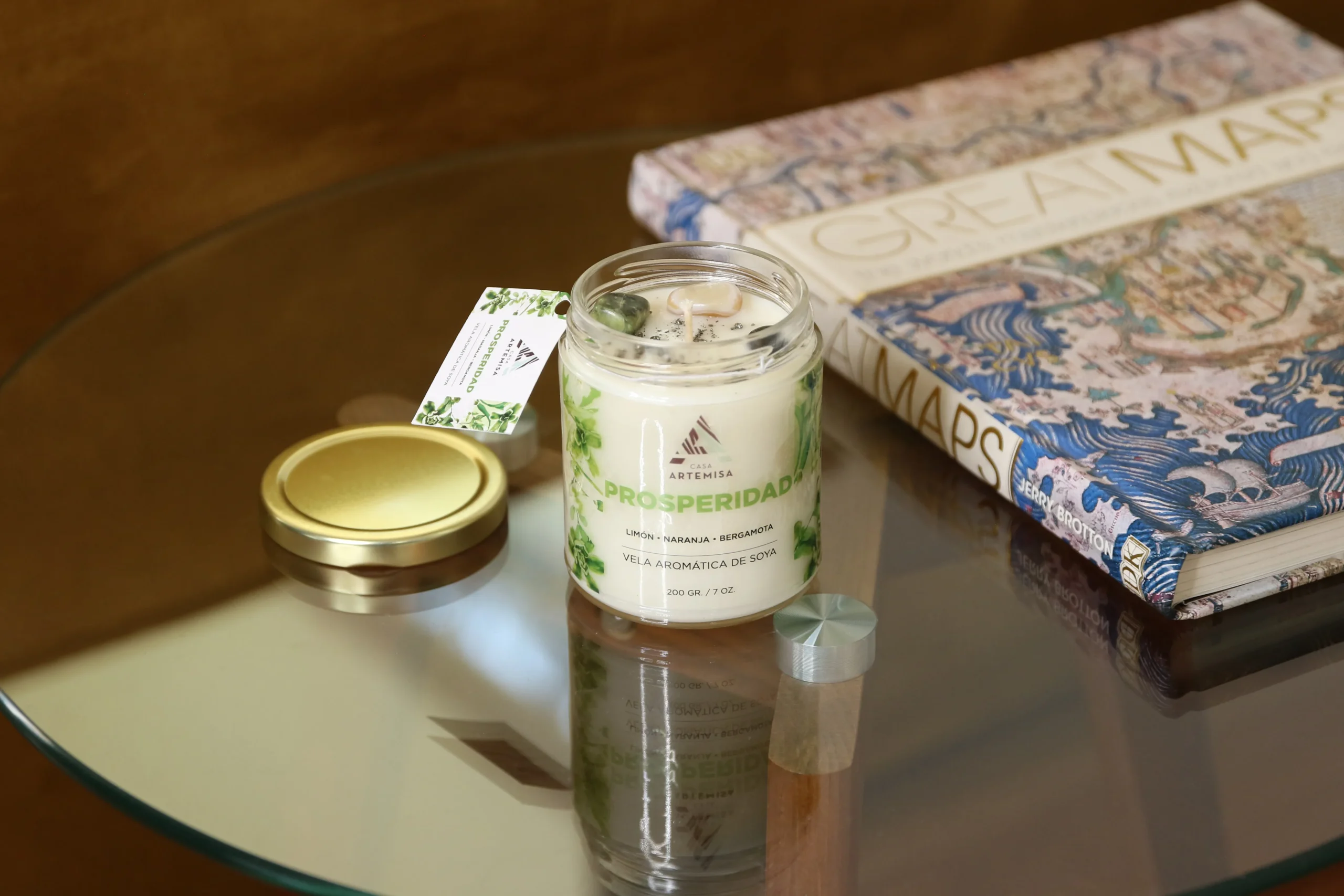 Vela Intencionada con Cuarzos que motiva a la Prosperidad.